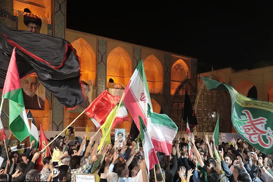 مردم دارالعباده یزد در حمایت از حمله موشکی سپاه پاسداران به مواضع نظامی رژیم صهیونیستی در حسینیه امیرچقماق یزد تجمع کردند.